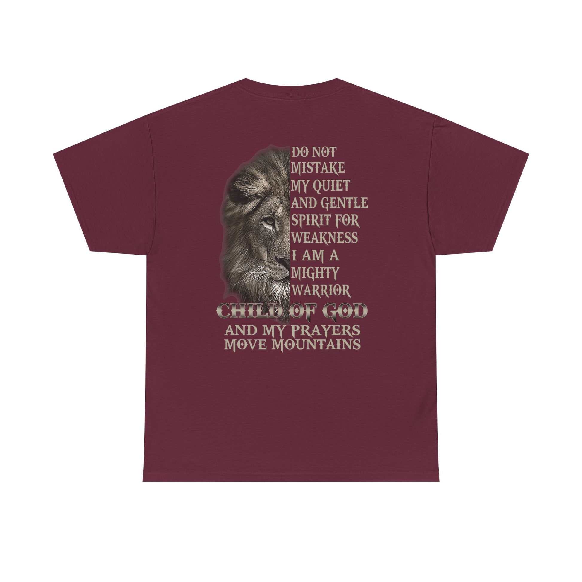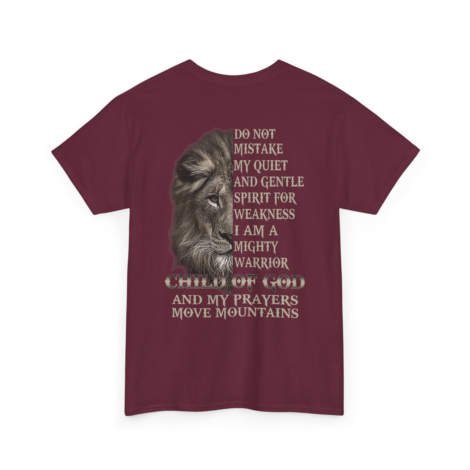 Introducing a statement piece for those who embrace strength and faith—this Unisex Heavy Cotton Tee is designed for comfort and style. Featuring a powerful message and striking graphic, this tee is perfect for casual outings or spiritual gatherings. Its classic fit complements any wardrobe, making it a versatile addition to both men’s and women’s closets. Feel empowered and inspired as you wear this tee to church, community events, or informal get-togethers. Ideal for gifts during holidays and celebrations such as Easter, Christmas, or any occasion that calls for reflection and connection, this tee resonates with those looking to express their inner warrior and child of God. With its high-quality fabric and timeless design, it’s not just clothing; it’s a reminder of your strength and faith.