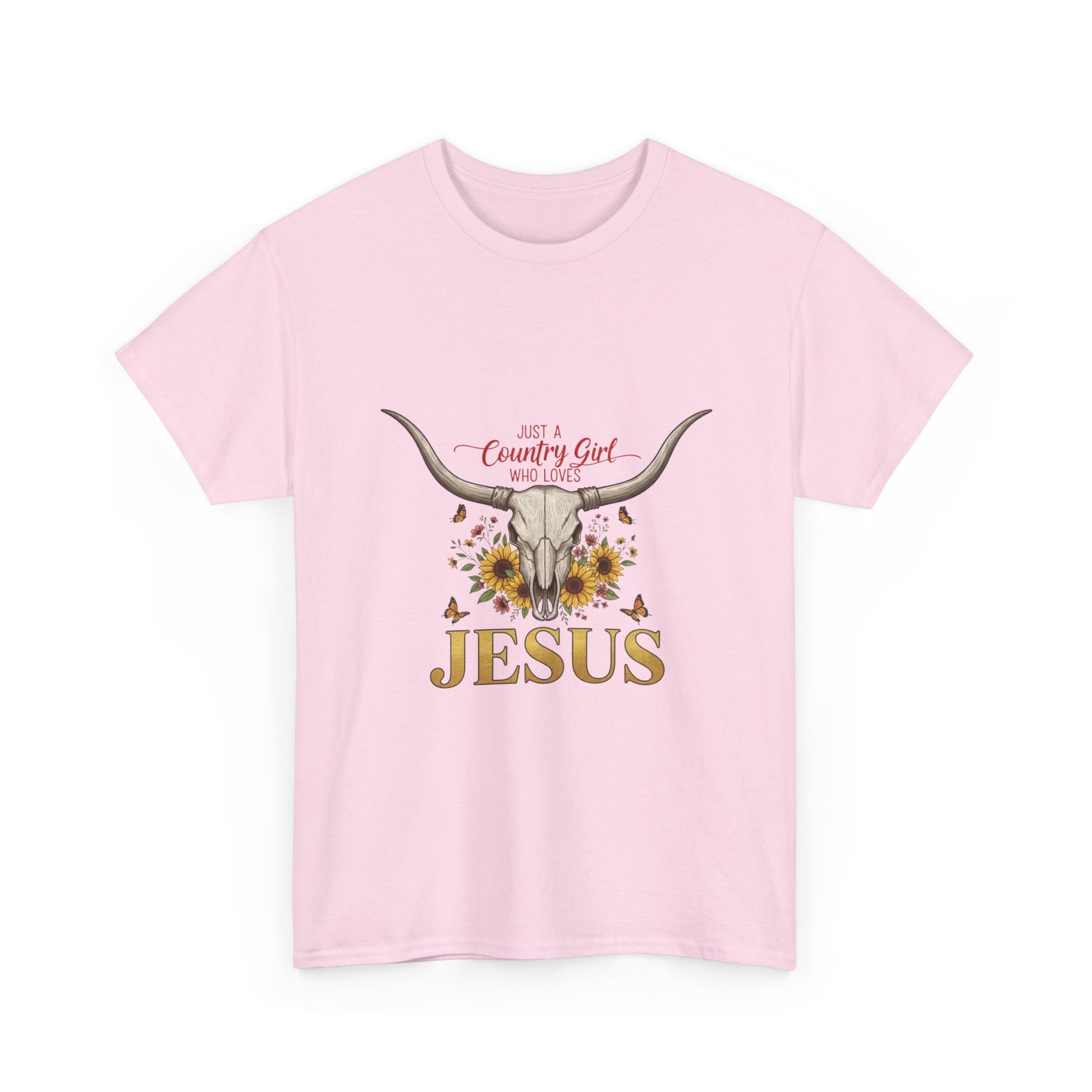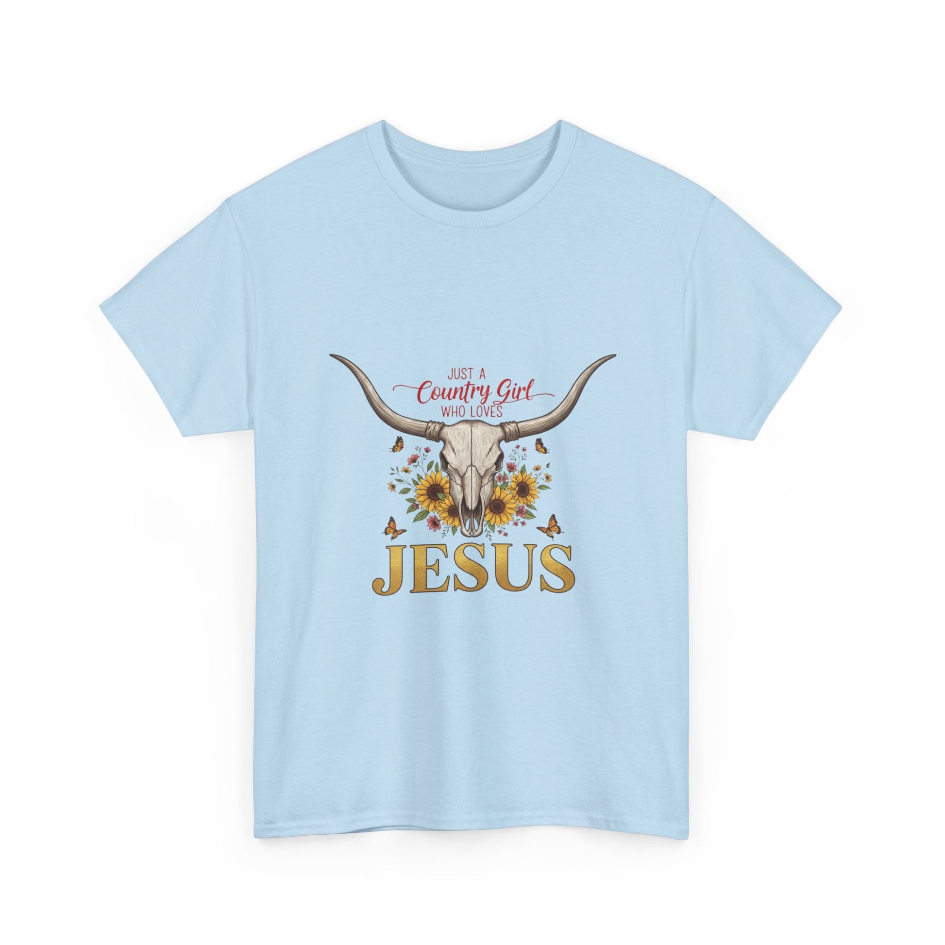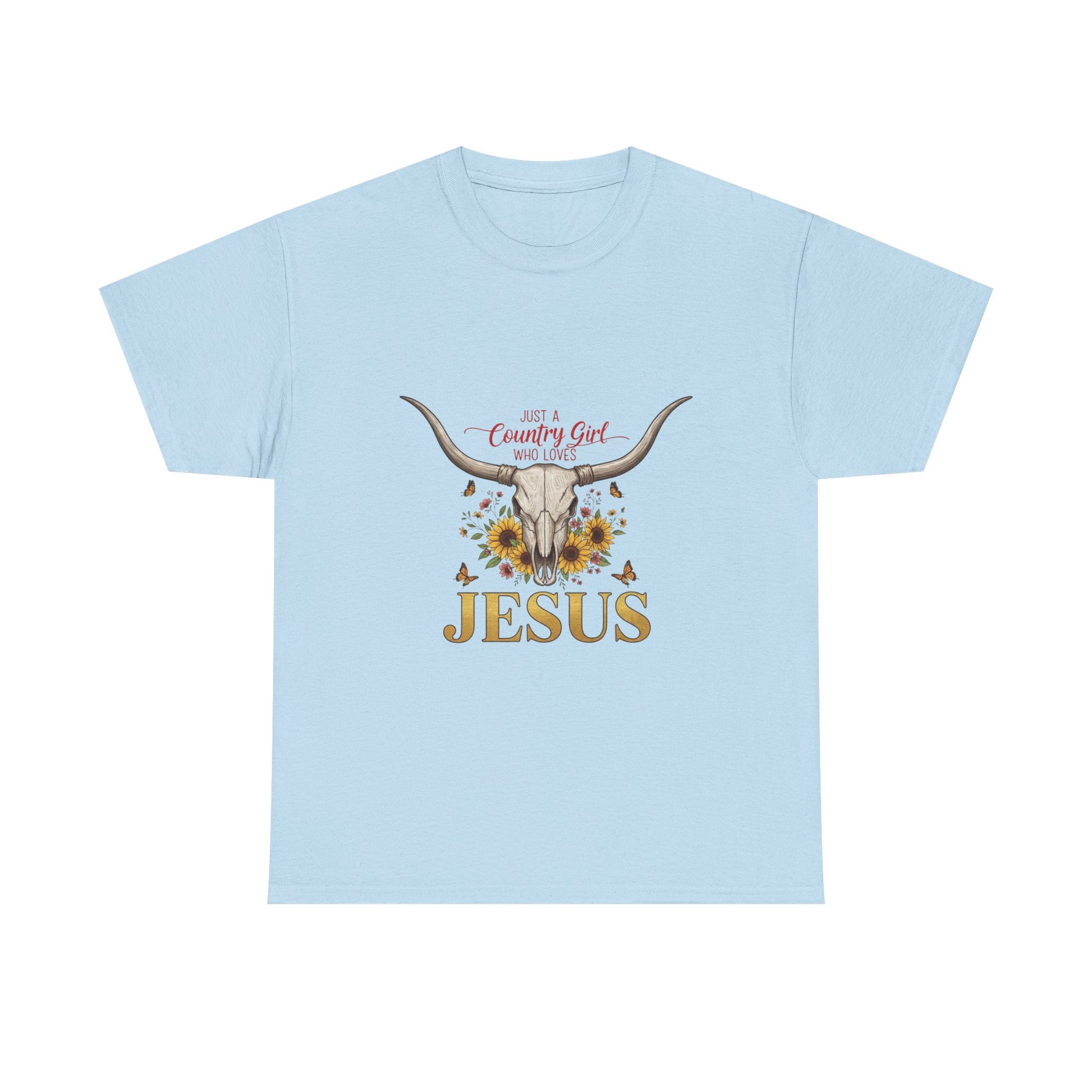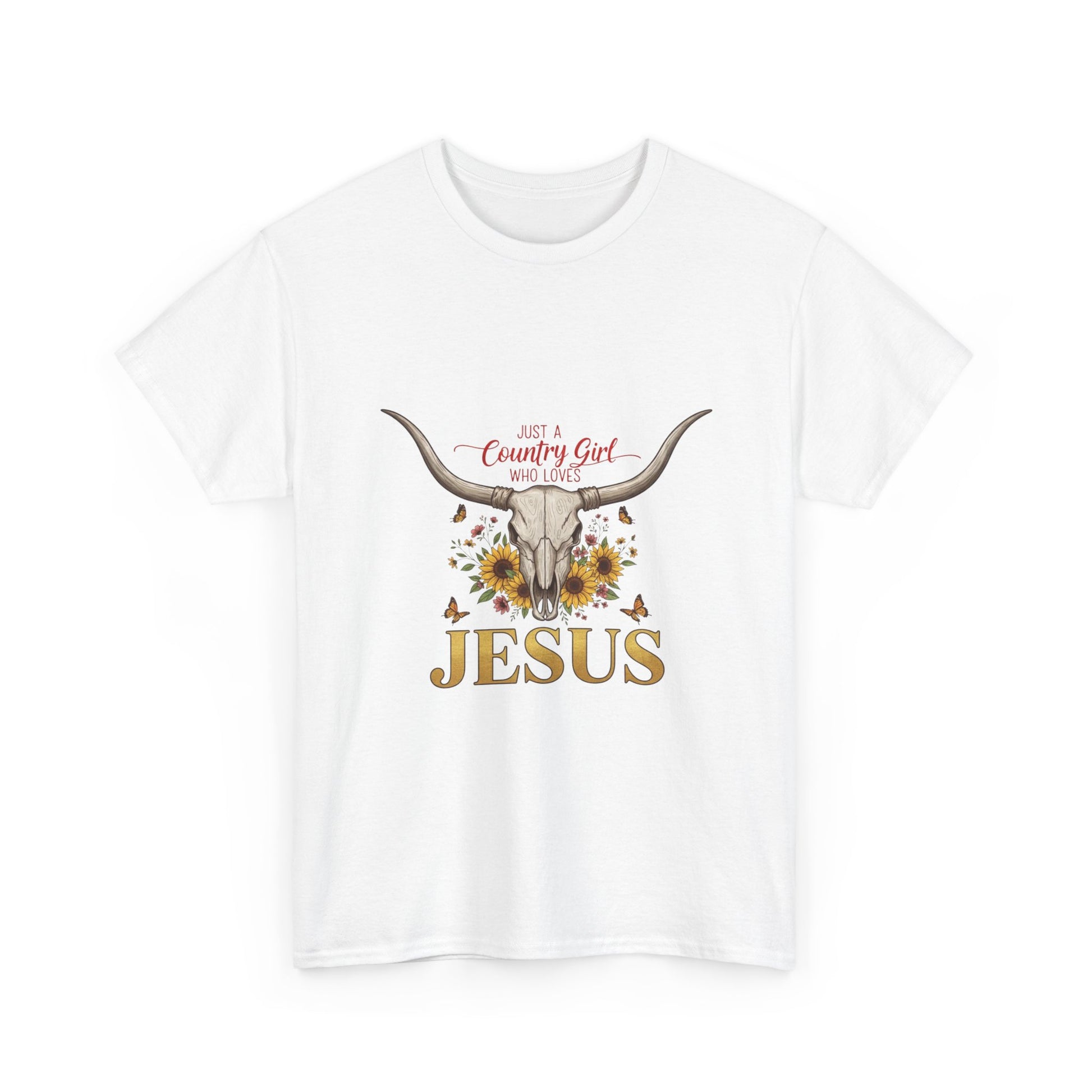A soft, lived-in tee that feels like Sunday morning on the porch. The front artwork pairs a weathered longhorn skull, sunflowers, and gentle script that reads as a quiet declaration of faith—large, gold lettering anchors the design with the word JESUS. Lightweight but sturdy cotton keeps the shirt breathable on warm days and comfortably layered when temperatures drop. Wear it to church picnics, low-key worship nights, or during a slow drive through backroads; it moves with you and carries a calm, confident message without shouting. The crew neck and classic fit sit relaxed on the body, while the tear-away label and reinforced shoulder tape keep the shirt comfortable all day. Subtle natural flecking in the undyed colorways gives a rustic, authentic vibe that complements the pastoral artwork.