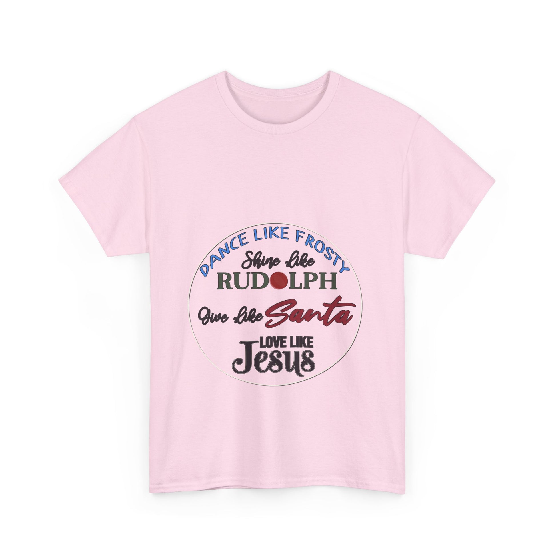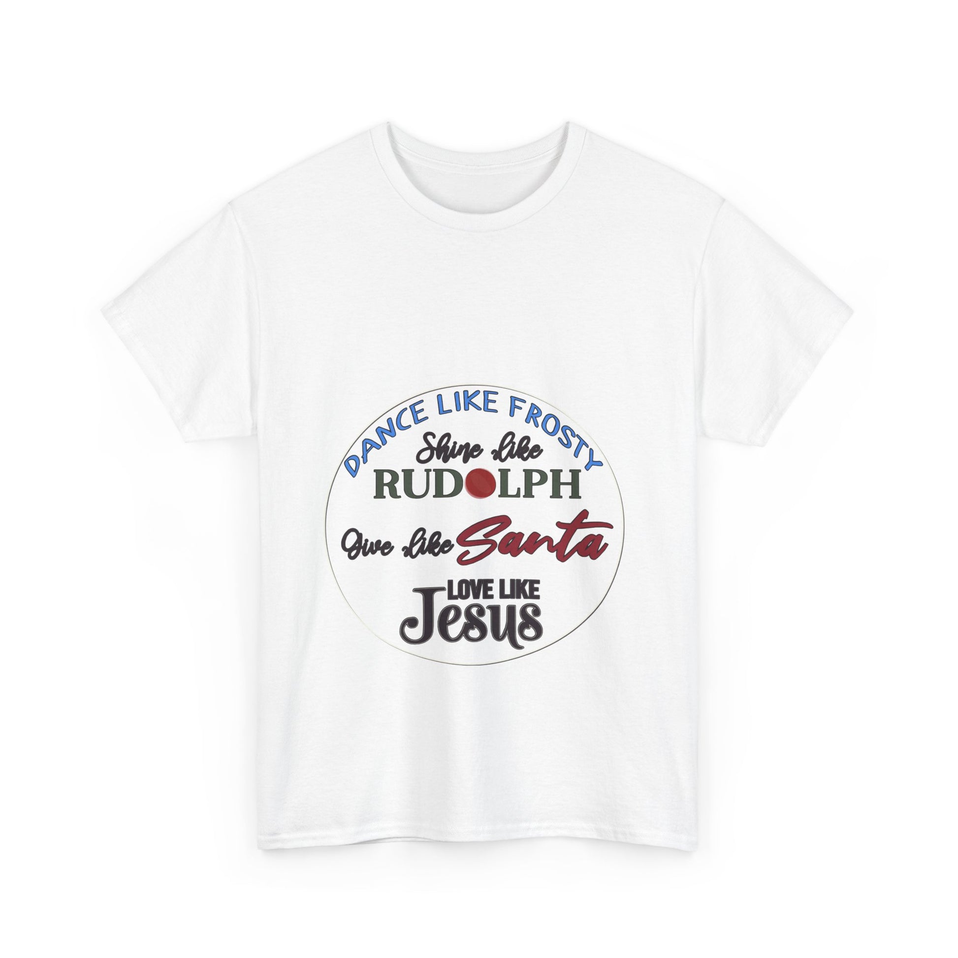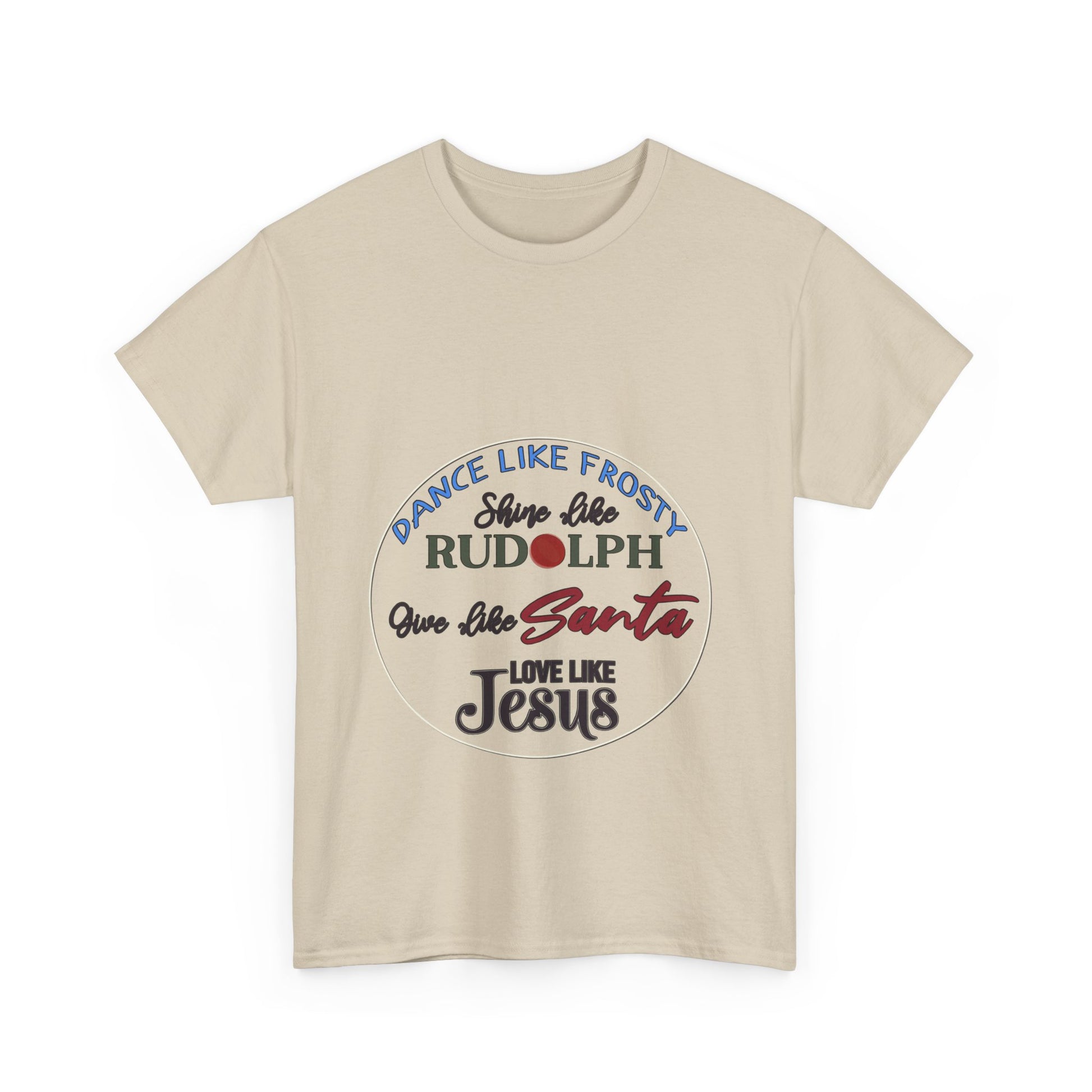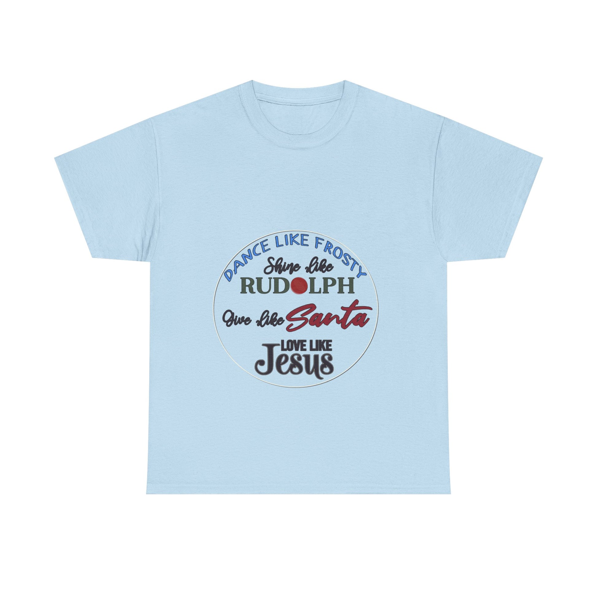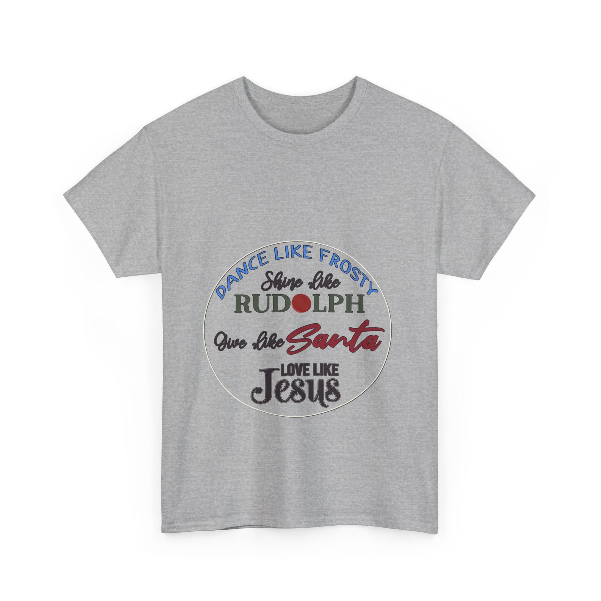 Celebrate the joy of the season with this Unisex Heavy Cotton Tee, designed for comfort and style. Its playful message encourages you to dance like Frosty, shine like Rudolph, give like Santa, and love like Jesus - perfect for spreading holiday cheer. The classic fit and soft fabric make it ideal for casual gatherings, family events, or cozy nights in. This tee is relevant for Christmas, family reunions, and festive parties, making it a thoughtful gift for anyone who embraces the true spirit of the season. Whether you’re attending a holiday celebration or just want to add a joyful vibe to your wardrobe, this shirt is sure to keep you comfortable and festive!