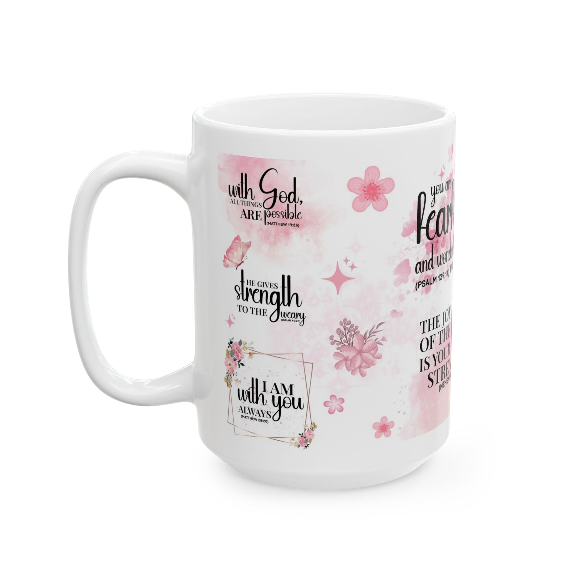 Introducing this beautiful ceramic mug, designed to bring warmth and positivity to your daily coffee or tea ritual. With a glossy finish and vibrant colors, it showcases your unique style while serving as a reminder to embrace your inner strength. Perfect for anyone who enjoys sipping their favorite beverages with a touch of inspiration, this mug makes an excellent gift for friends and family during holidays, birthdays, or any occasion that calls for a special touch. Whether it's a morning boost or an afternoon pick-me-up, this mug fits seamlessly into the life of anyone seeking a daily dose of encouragement and joy.